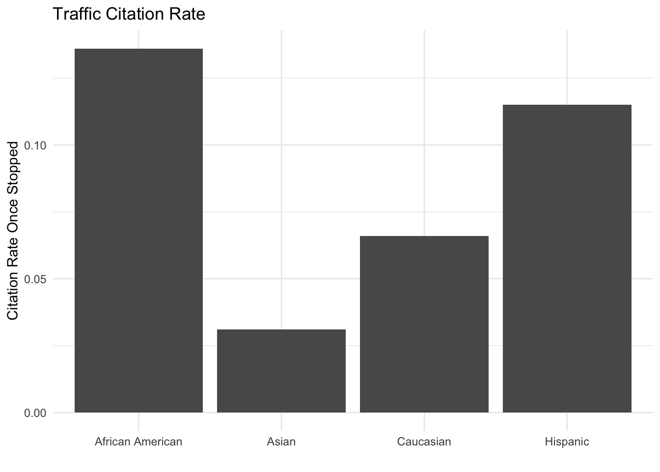 labs(y = "Citation Rate Once Stopped", x = "", title = "Traffic Citation Rate") +