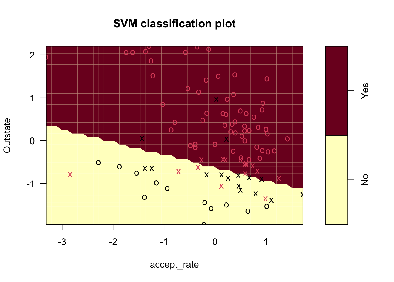 college_svm1 <- svm(Private ~ Outstate + accept_rate,