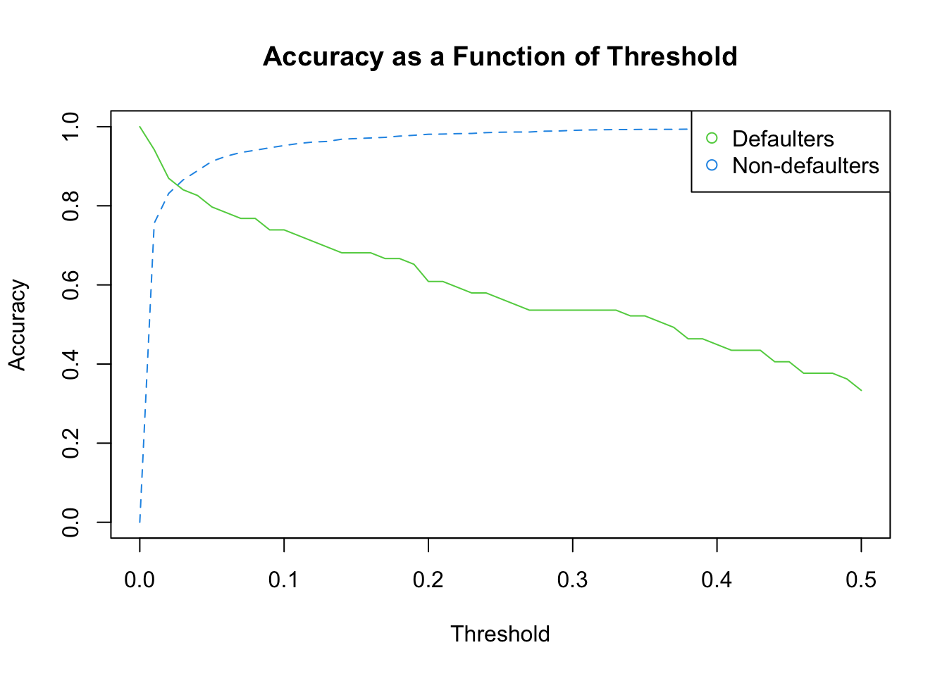 main = "Accuracy as a Function of Threshold")