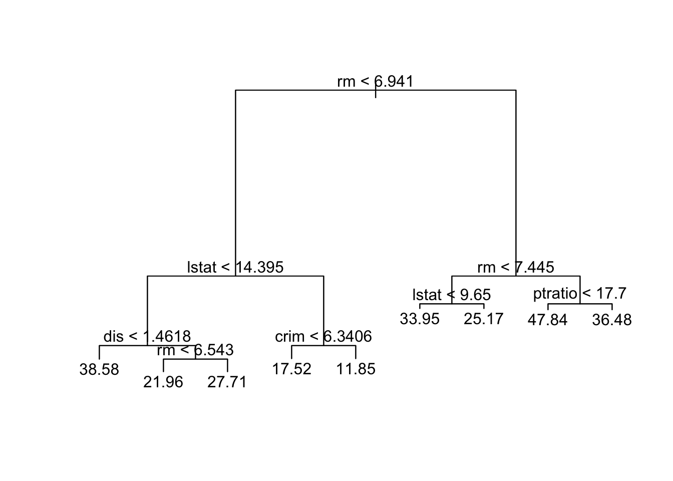 best_size <- cv_boston_tree$size[best_indx]Prune the tree using the best size as found above