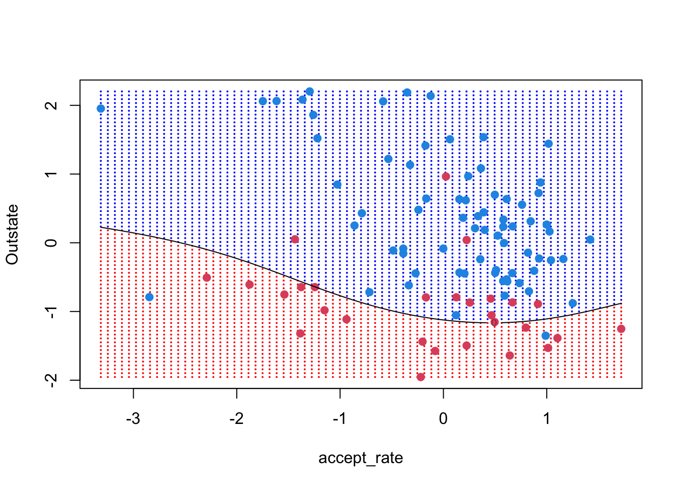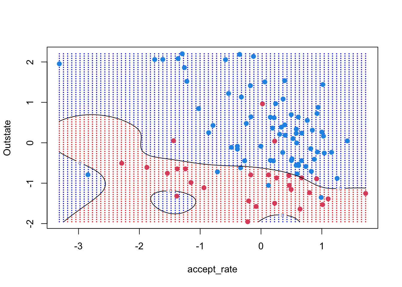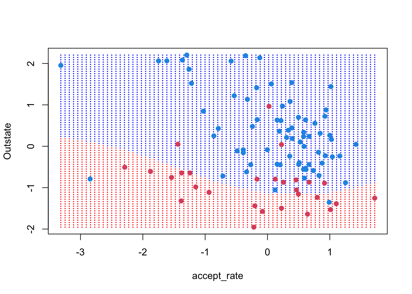 college_svm1 <- svm(Private ~ Outstate + accept_rate,